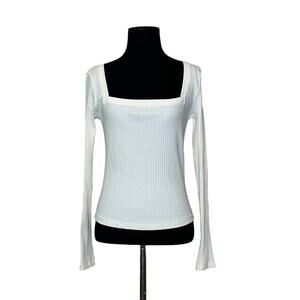 ZARA creamy white long sleeves square neck ribbed sweater size M
