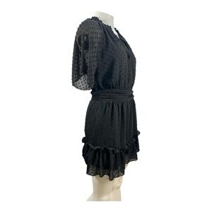 ZARA dotted mesh black v-neck sheet short sleeve mini elegant dress size M