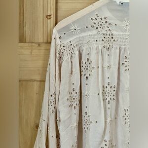 Peachy keen in this flowy eylet blouse. Softest shade of peach. Style anywich way - see photos 😉 model is 5'2 / 120lbs