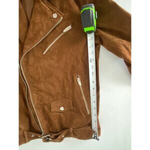 Timeless and effortlessly cool, this ZARA faux suede moto jacket adds instant edge to any outfit. Crafted in a rich caramel-brown tone with soft suede-like texture, it features classic biker details — asymmetric front zip, silver hardware, zip pockets, and a belted hem. Fully lined for comfort and designed to elevate both casual and night-out looks.