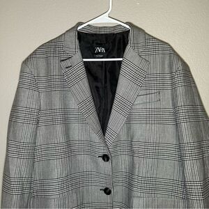 ZARA gray plaid oversized blogger favorite blazer women’s size small