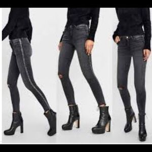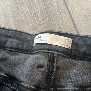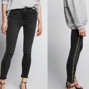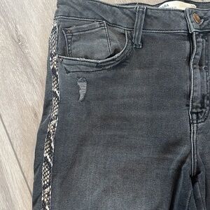 ZARA grey high waist distressed raw hem snakeskin stripe jeans size 10