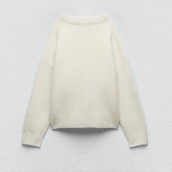 ZARA high neck wool blend neutral knit sweater women's size medium