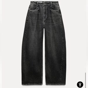 ZARA jeans Women’s 4/W26 TRF Waisted Relaxed Wide Leg Darts Denim Black 8727/210