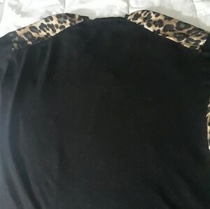 Zara leopard print blouse. The animal print part has a silky like material while the rest of the shirt has a lightweight sweater feel. Super cute flap openings on each bottom side of the shirt. Sexy, classy and fun! Has a loose fit. Great condition!