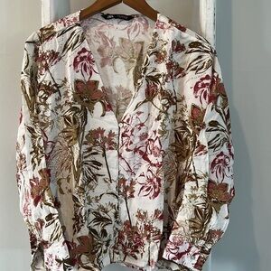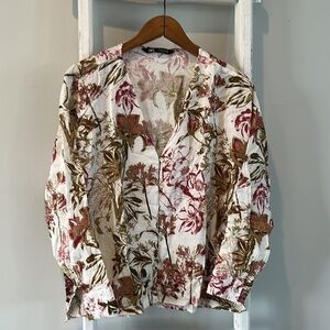 ZARA linen floral button up sustainable blouse size small