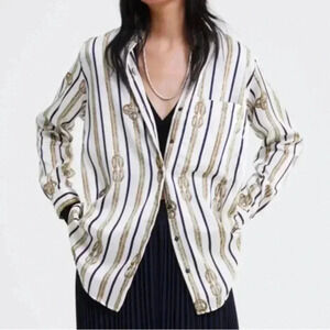 ZARA long nautical striped silky flowy blouse shirt size small office siren chic