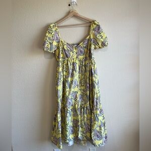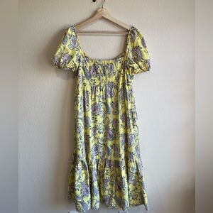 ZARA maxi PRINTED DRESS WITH pockets FRILLS PUFF SLEEVES YELLOW summer Boho XL