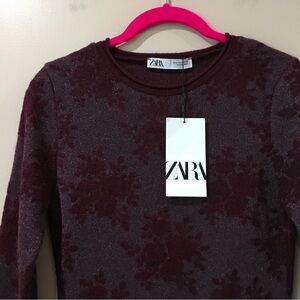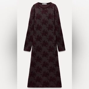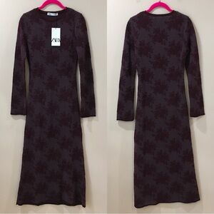 ZARA midi dress Womens Small Jacquard Floral Long Knit Red Stretch New 3859/103