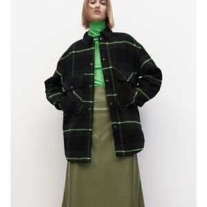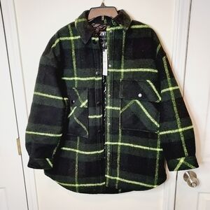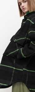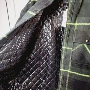 quilted overshirt with lapel collar and cuffed long sleeves, front patch pockets, front snap button closure