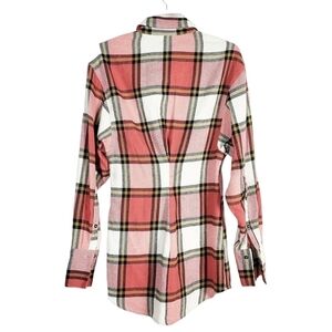 Lapel collar shirt with full cut long sleeves with cuffs. Front patch pockets. Pleat detail. Front button closure. Cinched waist that accents your shape. Color: red (even though I think it is a red/burnt orange)
