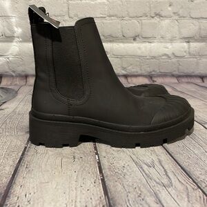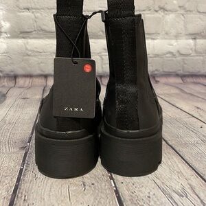 ZARA pull on Matte Black chunky heeled pull on boots Sz35 NWT