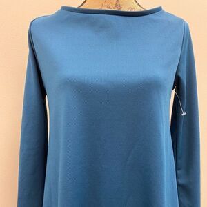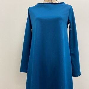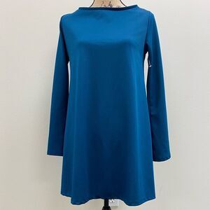 Like new Zara Trafiluc Fall/Winter Collection retro teal blue tunic mini dress with bell sleeves. EUC, great shape, size medium, textured material, boat neck, wide bell sleeves, polyester spandex blend for stretch and shape, see pictures for details.