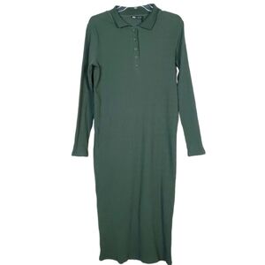 ZARA ribbed polo collar long sleeve midi dress hunter green