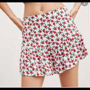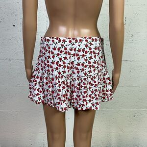 ZARA rose print ruffle skort red white L