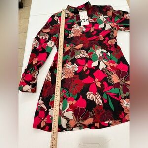 ZARA short floral dress with long sleeves and satin effect size L NWT