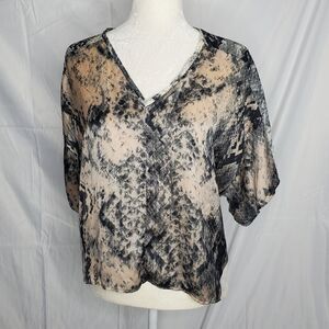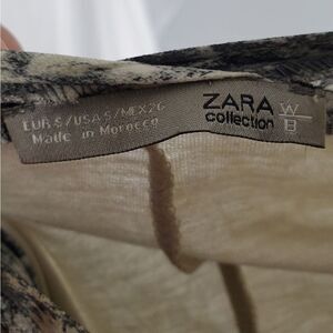 Oversized snake print short sleeve tee by Zara. Boxy fit and a slight high low style. Silky polyester in the front and a tee shirt material in the back. There is a faint discoloration shown in photo 4 that has not been treated.