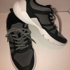 Zara Black/White Sneakers Walking Running Exercising Comfort Size US 6-6.5 EU 37. These sneakers are in great shape. Please see all photos. There is a stain on the rear left side of the left sole that I cannot get out 🤨. It looks worse than it is in this pic. Hardly noticeable in real life!