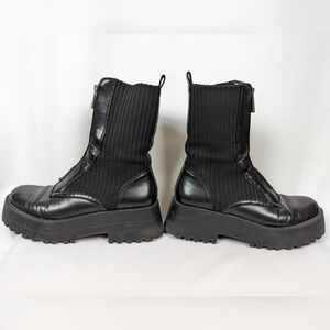 ZARA sz. 40/9 Flat Sock Ankle Boots Zipper Front Booties Combat Chunky Platform