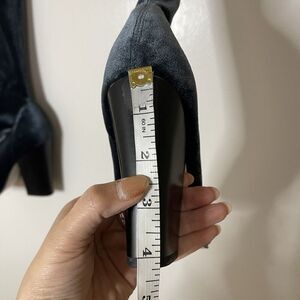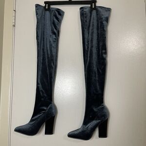 ZARA teal blue point toe velvet velour thigh high sock heeled boots 37 US 6.5