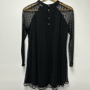 ZARA trafaluc collection ruffled dress in lace fabric with transparent sleeves ruffled dress in lace fabric with transparent sleeves and a circular skirt, small buttons even on the neck extremely elegant. total length measurement 32” 28” wide waist, front width of bottom circular skirt 35”