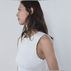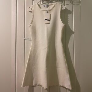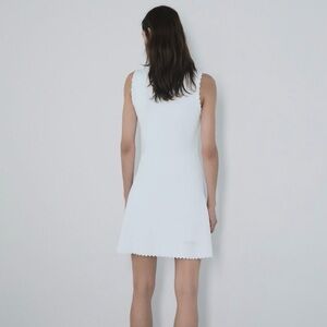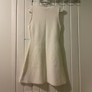 NWT and no defects at all. Size medium white scalloped dress. Material is a heavier weight and not see through. Super cute to dress up or down. Armpit to armpit 16” and centerback length is 35”. Tote 18.