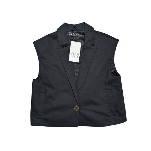 ZARA women's Black VEST, Size Small slightly cropped styling, NWT