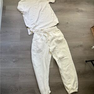 Cream joggers & 2 t-shirts / cream & taupe - all sz M