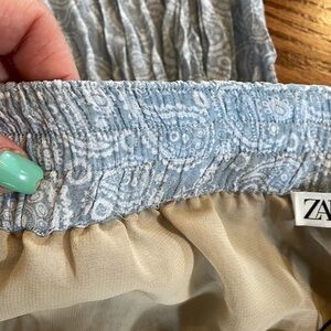 ZARA women’s crinkle accordion pleat semi sheer wide pull on pants with shorts M