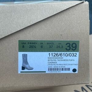 ZARA women’s leather booties boots square toe, mid heel green Sz 39