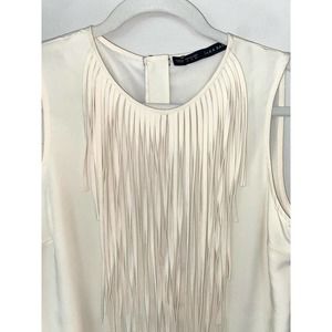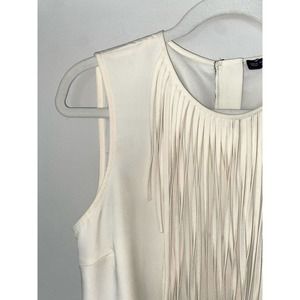 ZARA womens medium ivory fringe front tunic mini dress crew neck sleeveless 0064