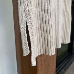 Stylish knit sweater top. Features a ribbed pattern. Perfect for layering. Sleeveless. Cotton
