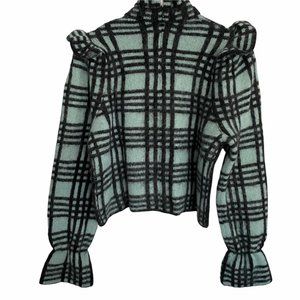 ZARA wool mohair sweater NWT green black S ruffle shoulder soft
