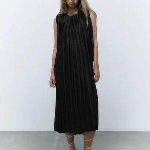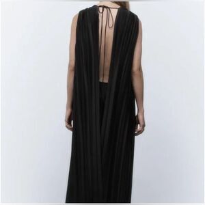 ZARA BLACK PLEATED FLOWING CUT OUT BACK DRESS MEDIUM NWT