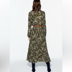 ZARA BNWT GREEN PAISLEY PRINT MIDI SHIRT DRESS BELTED.