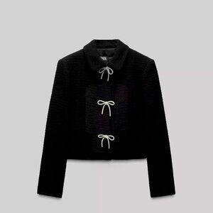 ZARA BOW BUTTON TEXTURED JACKET