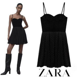 ZARA | Black | VELVET DOTTED MESH DRESS