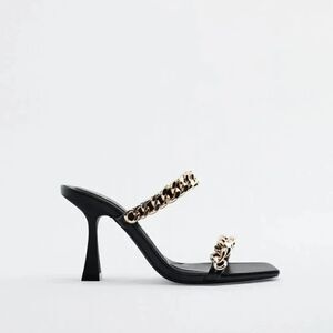 ZARA HEELED SANDALS WITH CHAIN DETAIL