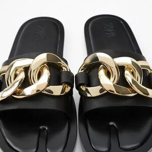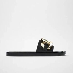 ZARA CHAIN TRIM LOW HEELED SANDALS