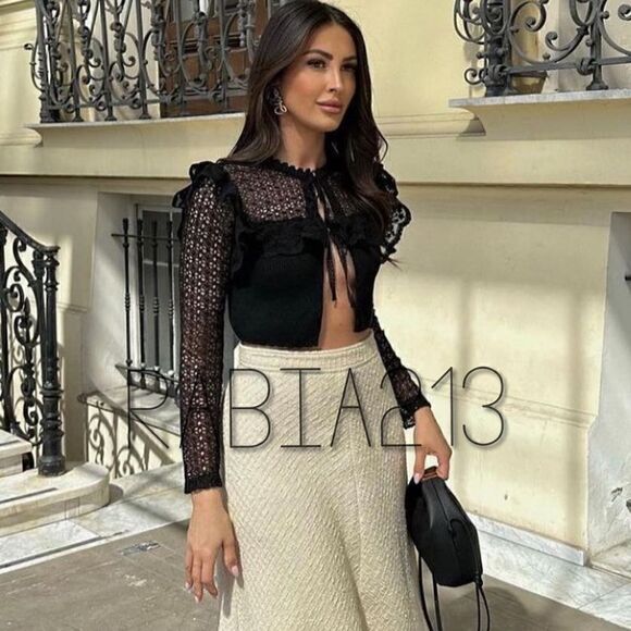 ZARA COMBINATION OPEN KNIT RUFFLED CARDIGAN