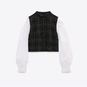 ZARA CONTRAST TEXTURE CHECK SHIRT -NWT SIZE M