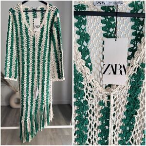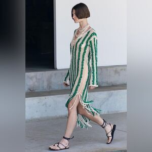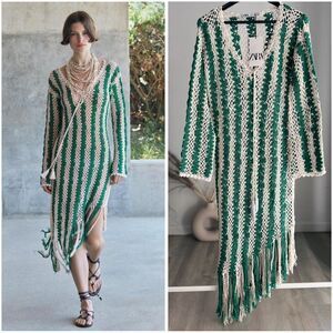 ZARA CROCHET ASYMMETRIC TUNIC DRESS ECRU / GREEN