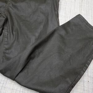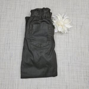 ZARA Coated Paperbag Olive Green Pants Size 4. High-waisted olive green paper bag pants with elastic waistband and ruching. Front pockets and back pockets. Suggest cuffed hem for styling. Front zip and metal button closure. Size 4. Excellent Used Condition.