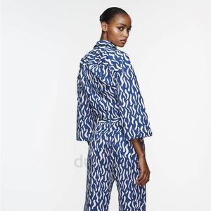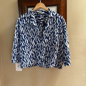 ZARA Royal Blue White Print Cotton Voile Button Down Blouse Top Size Small. No rips, stains, or tears. It is missing one button at the top, but in my opinion, you wouldn’t ever use that anyway. You could order buttons from Amazon and have it replaced.