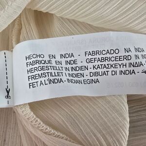 This elegant blouse is a beautiful addition to any wardrobe. The delicate embroidery adds a touch of sophistication. The ruffled detail provides a feminine and romantic flair. The light beige color is versatile and easy to style. It's a perfect piece for both casual and more dressed-up occasions.