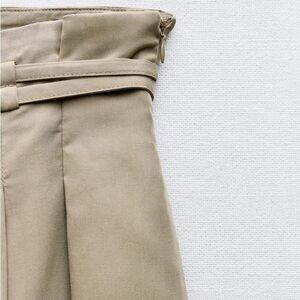 Skort with a high waist and pleats with tonal double belt. Side hidden in-seam zip closure.