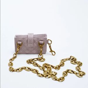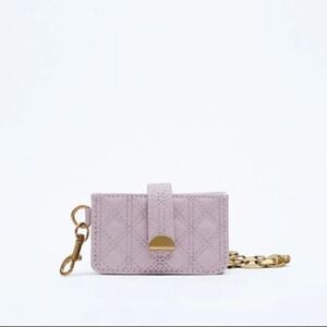 CARD HOLDER BAG. AVAILABLE IN SEVERAL COLOURS. DOUBLE SEAM DETAIL ON THE STRAP. SEVERAL INNER COMPARTMENTS. DETACHABLE CHAIN SHOULDER STRAP. BUTTON FASTENING.