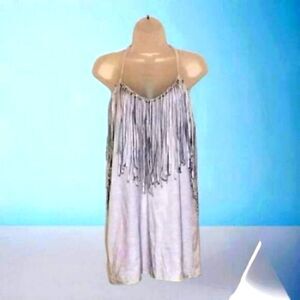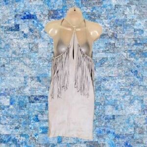 ZARA DRESS Trafaluc GRAY Faux SUEDE Leather FRINGED TUNIC/MINI NEW SMALL