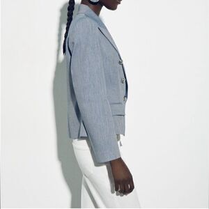 ZARA Double-Breasted Textured Weave Blazer NWT