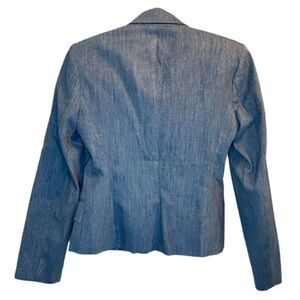 Stylish blue double-breasted blazer with silver buttons. Perfect for a chic look.